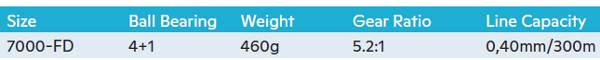 Sie wurde speziell entwickelt, um Wurfweite zu maximieren, ohne dabei die volle Leistung und Kontrolle aufzugeben. Beide Rollen verfügen über einen Graphit-Verbundkörper, einen Rotor mit Gegengewicht, eine verlängerte Aluminiumspule und eine extreme Bremskraft. Ein Schnurschutz verhindert das Aufwickeln der Schnur unter der Spule.
